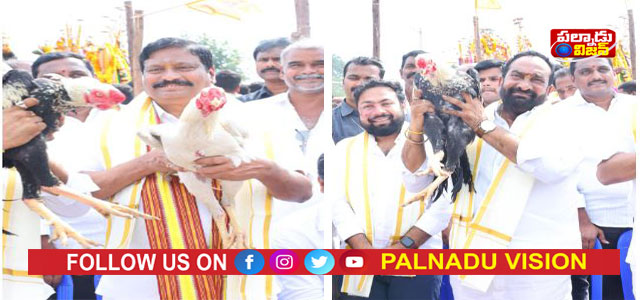పల్నాటి పౌరుషాలకు కోడిపోరు వీర తిలకందిద్దిన వేళా.. చిట్టిమల్లు, సివండి డేగ లు పోరు సలిపాయి. శనివారం వీరుల మహోత్సవం నాలుగొవ రోజును పురస్కరించుకుని కోడిపోరు ఘట్టంలో ముఖ్య అతిథిలుగా నరసరావుపేట ఎంపీ లావు శ్రీ కృష్ణదేవరాయలు, టీడీపీ పల్నాడు జిల్లా అధ్యక్షులు కొమ్మాలపాటి శ్రీధర్ లు ముఖ్య అతిధిగా హాజరయ్యారు.